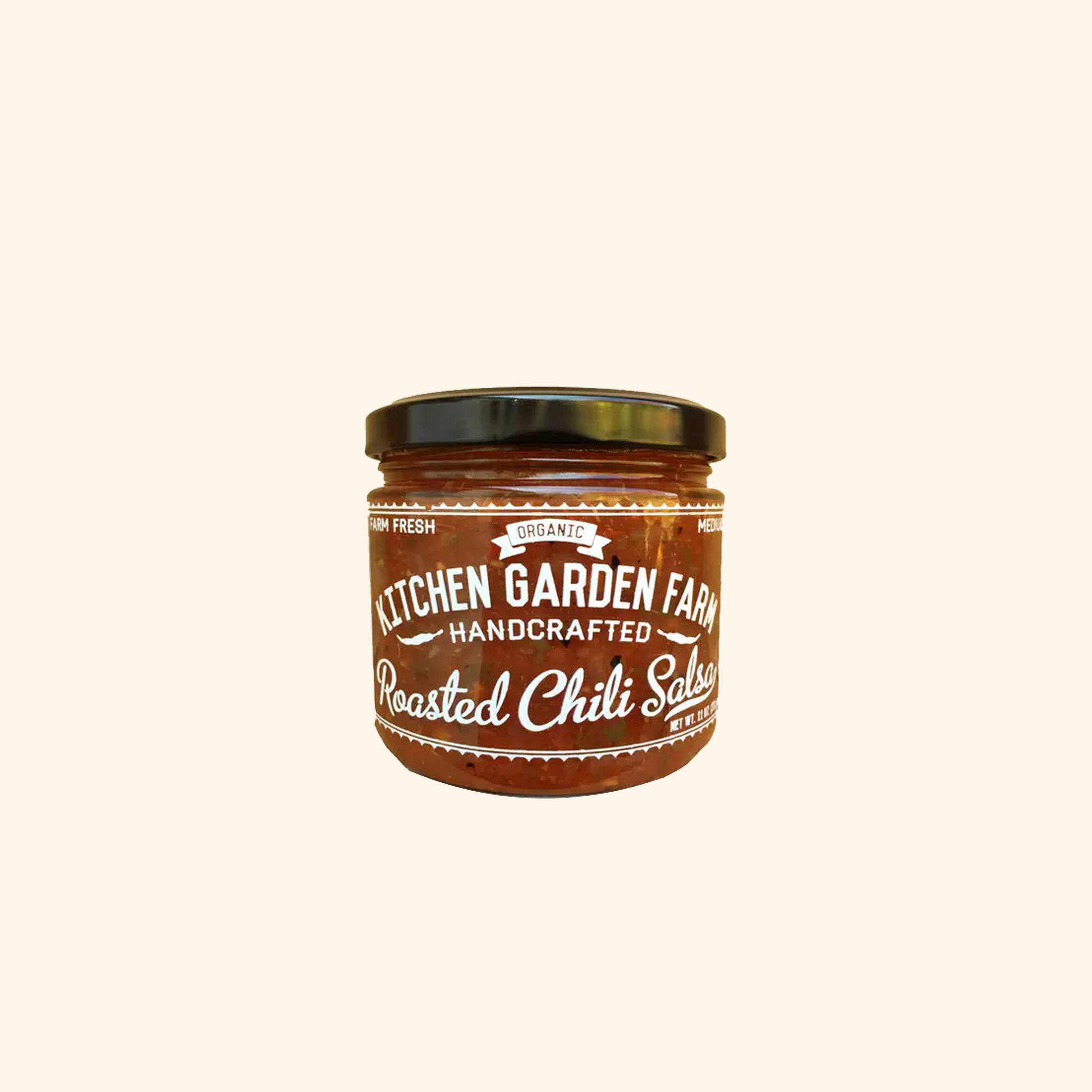 이 유기농 로스트 칠리 살사는 매사추세츠주 선덜랜드에 있는 키친 가든 팜(Kitchen Garden Farm) 가족 농장에서 재배한 유기농 토마토, 양파, 칠리를 사용하여 손수 만든 것입니다.