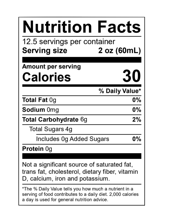 성분: 여과수, 백포도주스 농축액, 생강주스, 레몬주스, 장미 추출물, 로즈마리 추출물, 천연 엘더플라워 향, 블랙커런트 주스 농축액, 카모마일 추출물, 인삼 뿌리, 레몬밤 추출물, 비터 오렌지 껍질, 과일 및 채소 추출물(색소용)