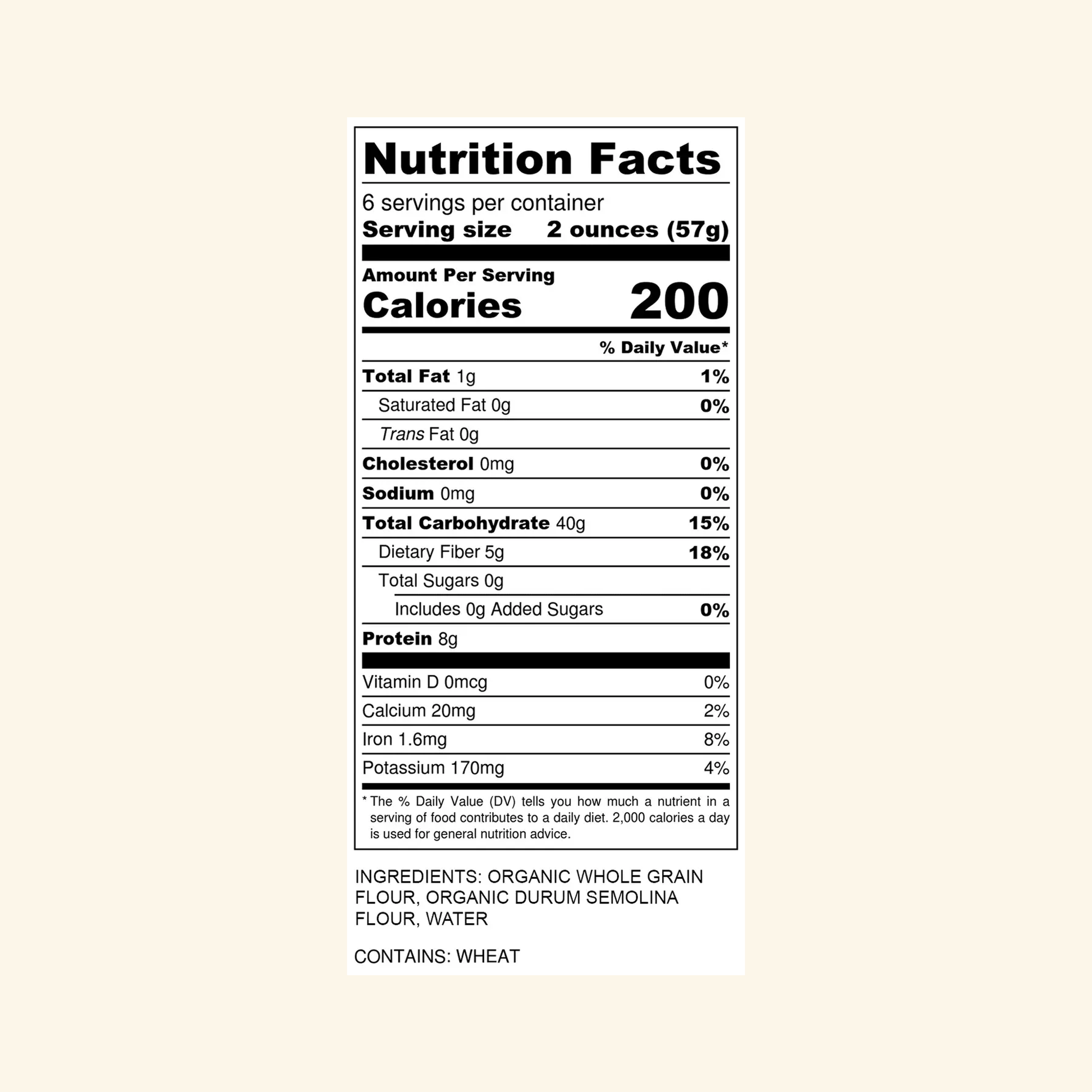 스포글리니가 뉴욕 허드슨 밸리의 유기농 돌로 빻은 단단한 붉은 밀가루로 만들었습니다.